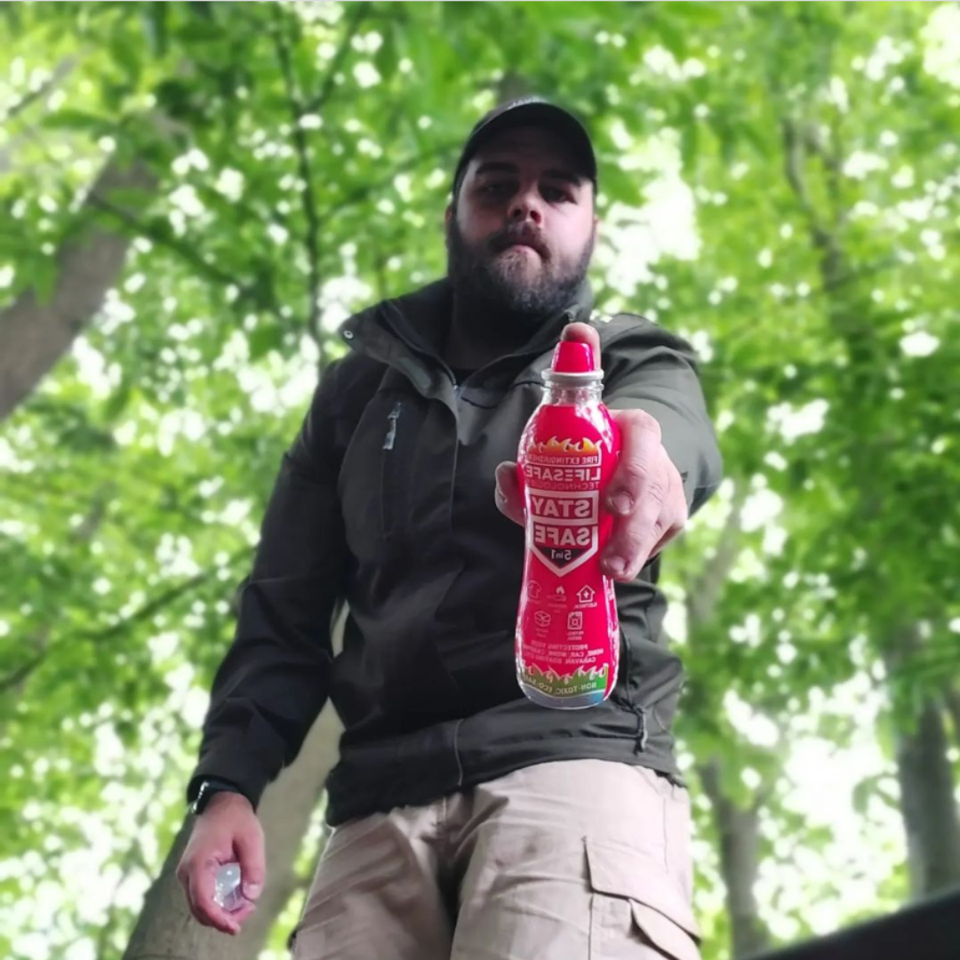"The StaySafe 5-in-1 fire extinguisher it's joined me on the adventure near the stove or fire pit - it's a compact (roughly the size of a water bottle), lightweight and versatile bit of kit to have with you in the car, house, BBQ or camping.