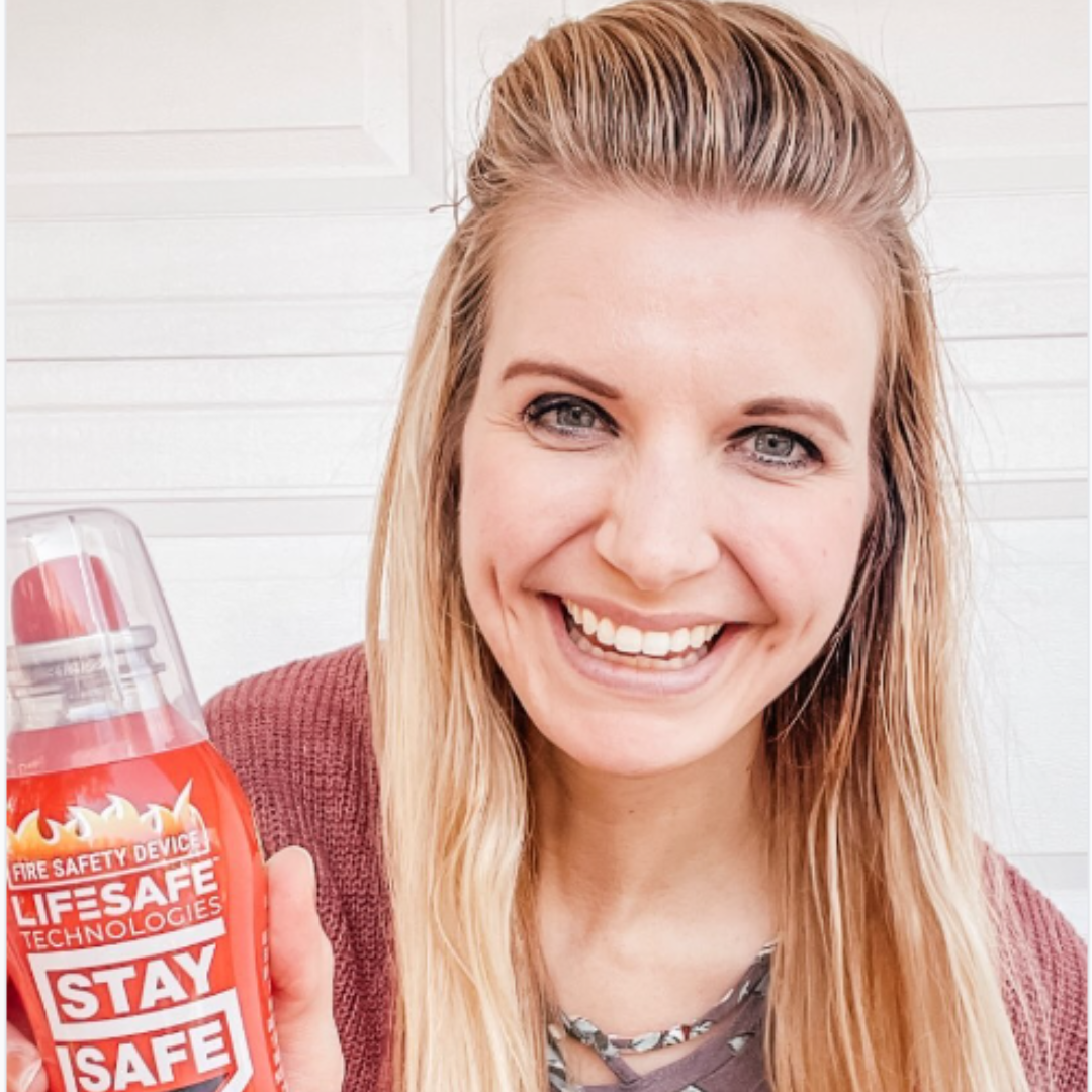 “My husband was downstairs cooking bacon in the grill, I came downstairs and just saw flames coming out of the oven. We couldn’t turn the gas off and needed to put the fire out quick, I keep my StaySafe on top of the kitchen cabinets, so I sprayed it on the grill bar and it put it out instantly.