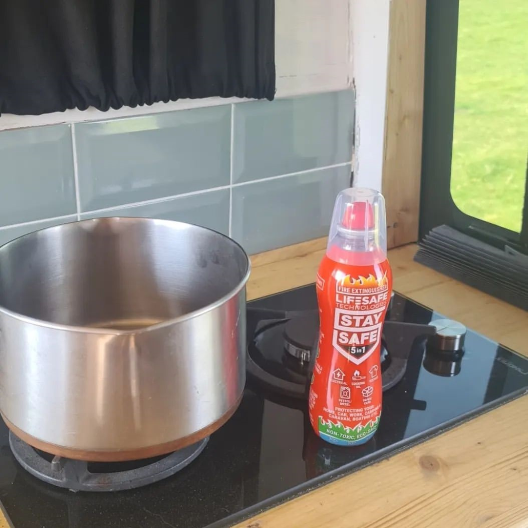 "So on each camp I've been on since receiving the StaySafe 5-in-1 fire extinguisher it's joined me on the adventure near the stove or fire pit - it's a compact (roughly the size of a water bottle), lightweight and versatile bit of kit to have with you in the car, house, BBQ or camping.